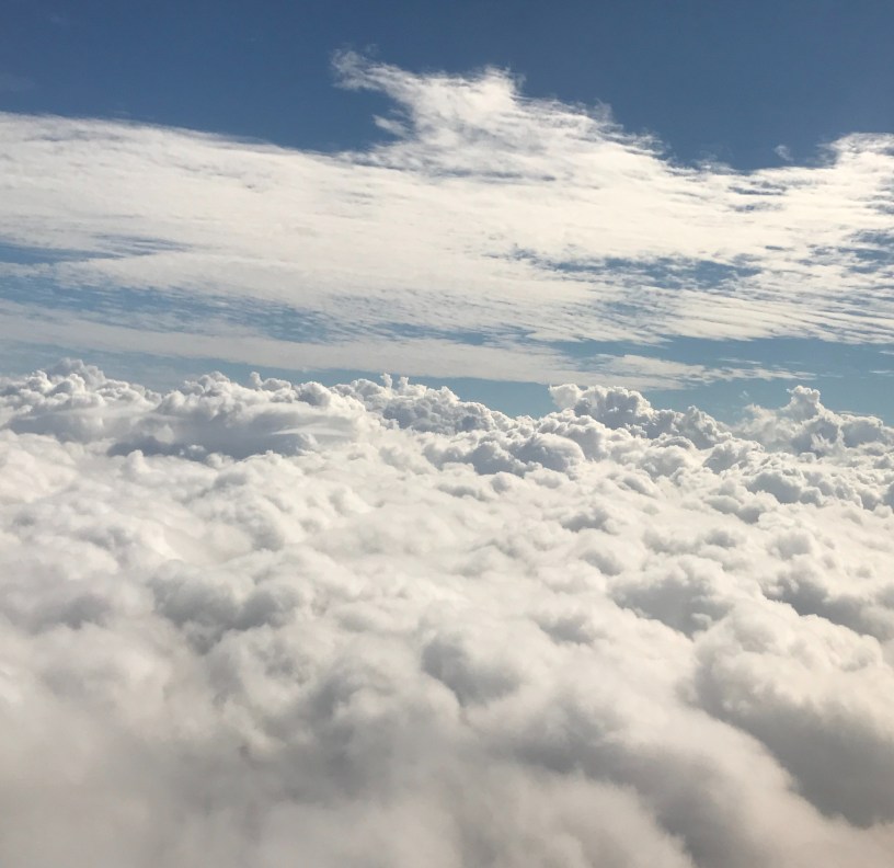 Looking up at the clouds, it seems to help bring me peace.  I enjoy being on a plane and being able to be so close to them; flying above them to see that there is some purity left on this planet.  As a young girl I loved to look up at the clouds to see what shapes I could see.  Allowing my imagination to soar high with them.  To get lost in my own made up world, that seems to be just beyond the clouds.