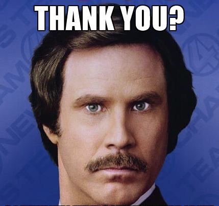 Me: Thank you for that and yeah, but I am surprised that you would be thanking me.