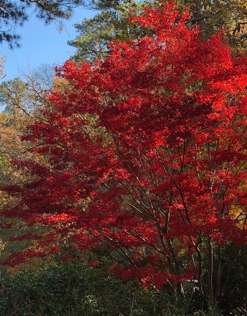 I saw a Weir Wood tree.  It was one of the most beautiful trees I had seen in a long time.  I guess it wasn’t really a Weir Wood Tree, but as a fan of the show and series Game of Thrones, of course I would see a tree with red leaves as being a Weir Wood.  The tree that I saw was probably something like an Ash or possibly an Oak.  Okay fine, I don’t know what kind of tree it was.  Whatever the type, it was beautiful.  In the part of Texas I live, the autumn season colors range from light brown to dark brown.   We may see some yellows, but there’s no vibrancy to the colors. It’s like life is suddenly gone without warning.  Green one day brown the next.  The only seasons we get are early Spring, Spring, and Summer.  Which is equivalent to cool, hot, and hotter. The Autumn temperatures can go from 40 degrees Fahrenheit on Monday and by Saturday the temperature is back in the 80s, with “frozen” people  thawing out in their shorts and flip-flops.  It could go from 60 to 88 in a day, sooo….yeah.  Sweaters, scarves, boots, and coats are purchased for fashion and not out of necessity.
